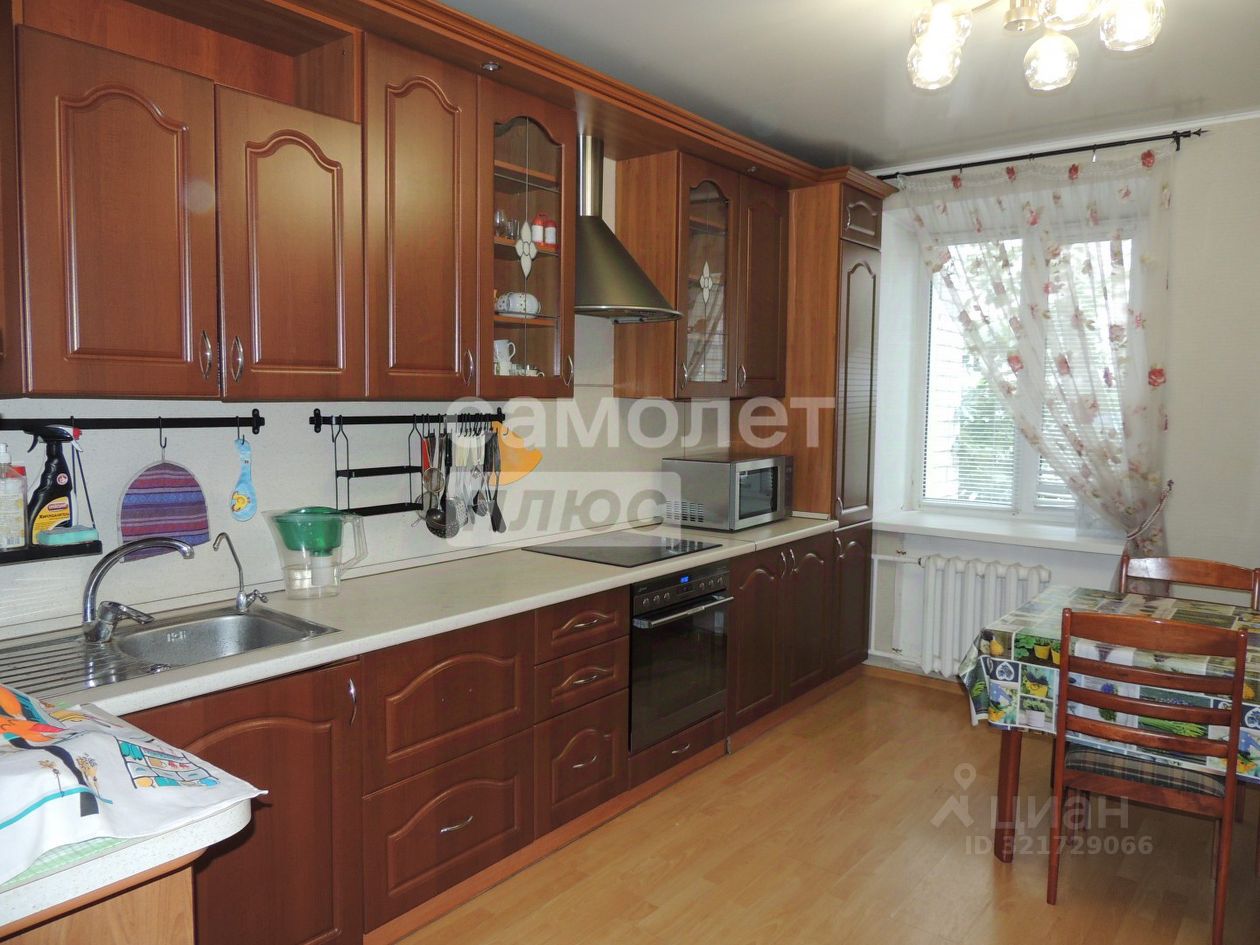 Кухня большая, прямоугольной формы, остается кухонный гарнитур, укомплектованный, варочной плитой, духовым шкафом, посудомоечной машинкой. Так же остается холодильник. Установлена система водоочистки.