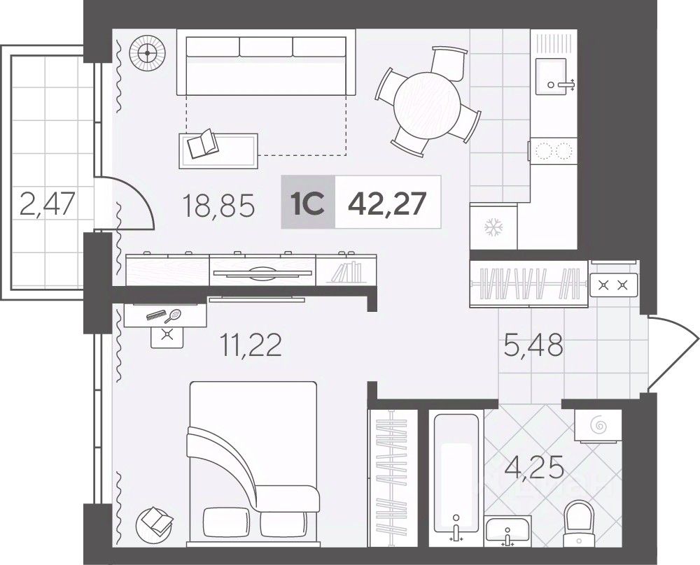 42,27 м²
