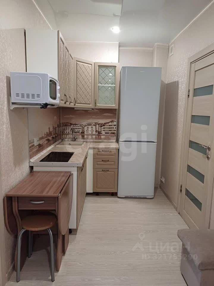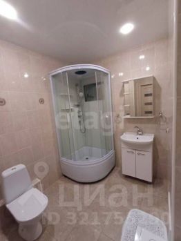 Санузел полностью выложен плиткой, есть тумба с раковиной и зеркалом, душевая кабина и стиральная машинка. На кухне остаются варочная панель и холодильник. Также в квартире имеется теплый пол и встроенный шкаф с большими зеркалами.