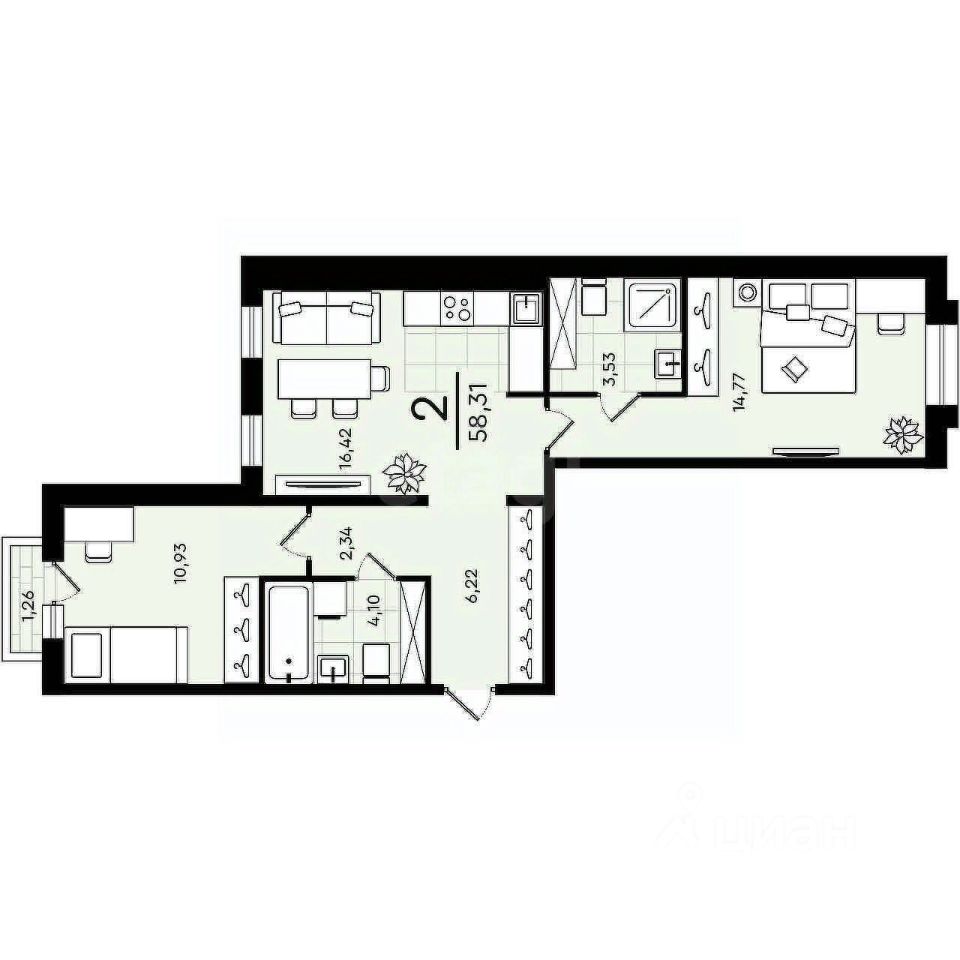 Квартира 2+ (2 комнаты и кухня-гостиная)