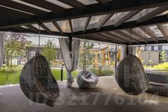 её тоже разделили на места для активных игр, отдыха и спорта - горки и скалодром, баскетбольный корт для проведения соседских матчей и скамьи вдоль пруда.