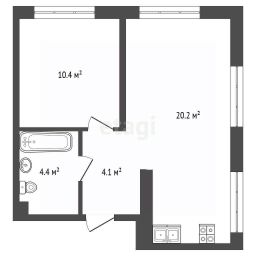 Просторная однокомнатная квартира в новом жилом комплексе предлагает рациональное использование пространства и высокий потенциал для создания современного интерьера. Объект отличается улучшенной черновой отделкой, включая выполненную электрическую разводку, что позволяет новому владельцу сэкономить ресурсы и реализовать индивидуальные дизайнерские решения. Ключевым преимуществом является уникальная планировка с выделенной спальной зоной площадью 10 м² и масштабной кухней-гостиной 20 м², освещенной тремя окнами. Такая конфигурация предоставляет возможность гибкого зонирования и создает ощущение простора, характерное для квартир большей площади. Санузел комфортного размера 4,4 м² спроектирован с учетом современных стандартов.