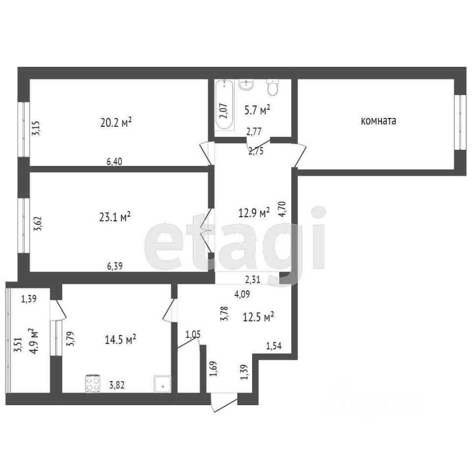 Функциональная планировка включает в себя просторную правильной квадратной формы кухню 14,5 кв.м. с выходом на большую лоджию, комфортного размера гостиную 23 кв.м., большую спальню 20 кв.м и детскую комнату 20 кв.м (которую при необходимости можно использовать как кабинет), просторный холл, раздельный сан.узел.