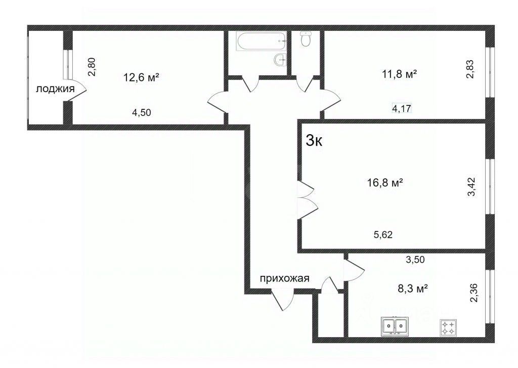 В кухне увеличена площадь за счет демонтажа кладовой.