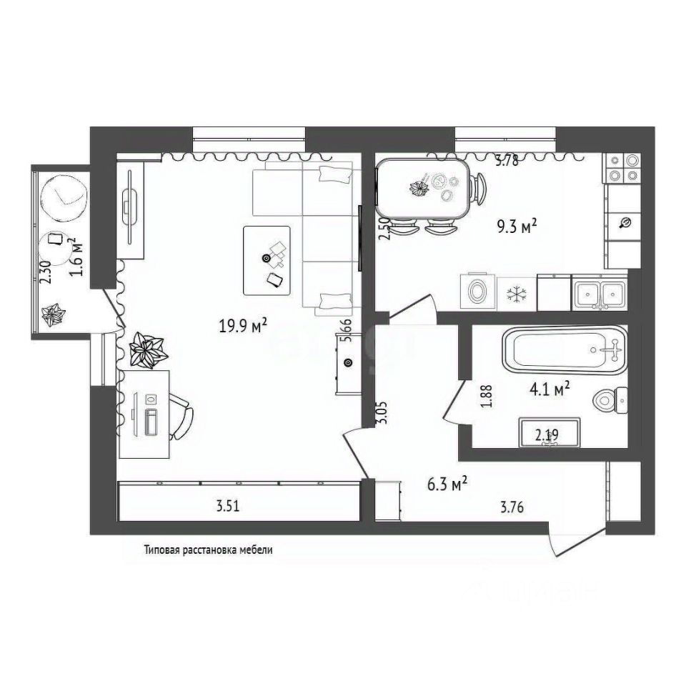 Просторная однокомнатная квартира площадью 39,6 кв. м расположена на 16 этаже современного жилого комплекса.