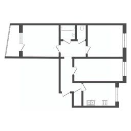Планировка: Три отдельных комнаты (17.2, 13.2, 12.4 кв.м), изолированная кухня (8 кв.м), раздельный санузел (полностью в кафеле), прихожая, кладовка и большая лоджия.