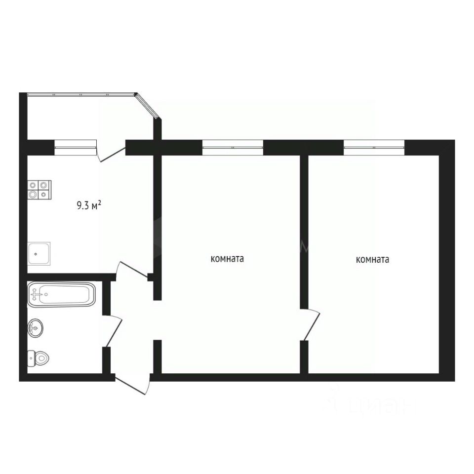 2 смежные комнаты правильной формы, просторная кухня-гостиная!