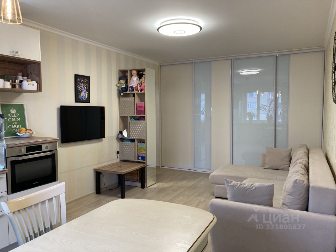 Квартира 1+, кухня-гостиная 24кв.м., отдельная спальня/детская 9,3кв.м., хорошее состояние, утепленная лоджия. Ширина помещений 3.4м, высота потолков 2.5м. В квартире остается кухонный гарнитур, холодильник, варочная индукционная панель, духовой шкаф с функцией СВЧ, вытяжка, шкаф-купе 3,4м, 2 стеллажа, обувной ящик-скамья в коридоре. В кухне-гостиной стена у детского уголка заклеена защитной пленкой, которая снимается без повреждения обоев. Дом очень теплый, зимой только пару раз открываем батареи. Большой двор с детской и спортивной площадкой, много парковочных мест.