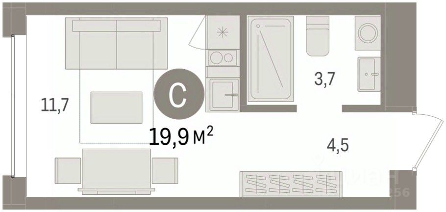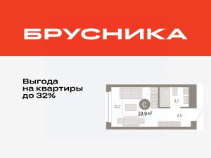 1-комн. студия от застройщика с предчистовой отделкой в ЖК "Дом у озера" на 5 этаже. Общая площадь: 19.49 кв.м. Высота потолков 2.7 м.