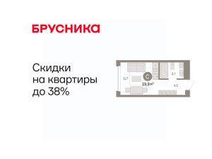 Просторная однокомнатная студия с предчистовой отделкой в ЖК "Дом у озера" на 5 этаже. Общая площадь: 19.49 кв.м. Высота потолков 2.7 м.