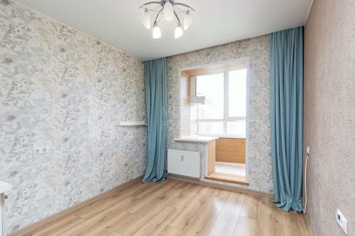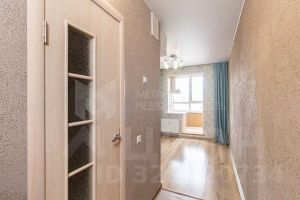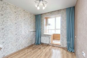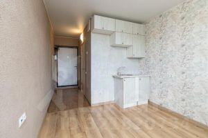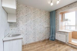 Общая площадь 16,57кв.м., 14 этаж шестнадцатиэтажного панельного дома. Окна выходят на детский сад, юго-западная сторона. Площадь комнаты, без учета коридора 9,03кв.м., санузел совмещенный 3,5кв.м.. Потолки 2,5 м. Отопление центральное, на балконе установлен теплый пол.