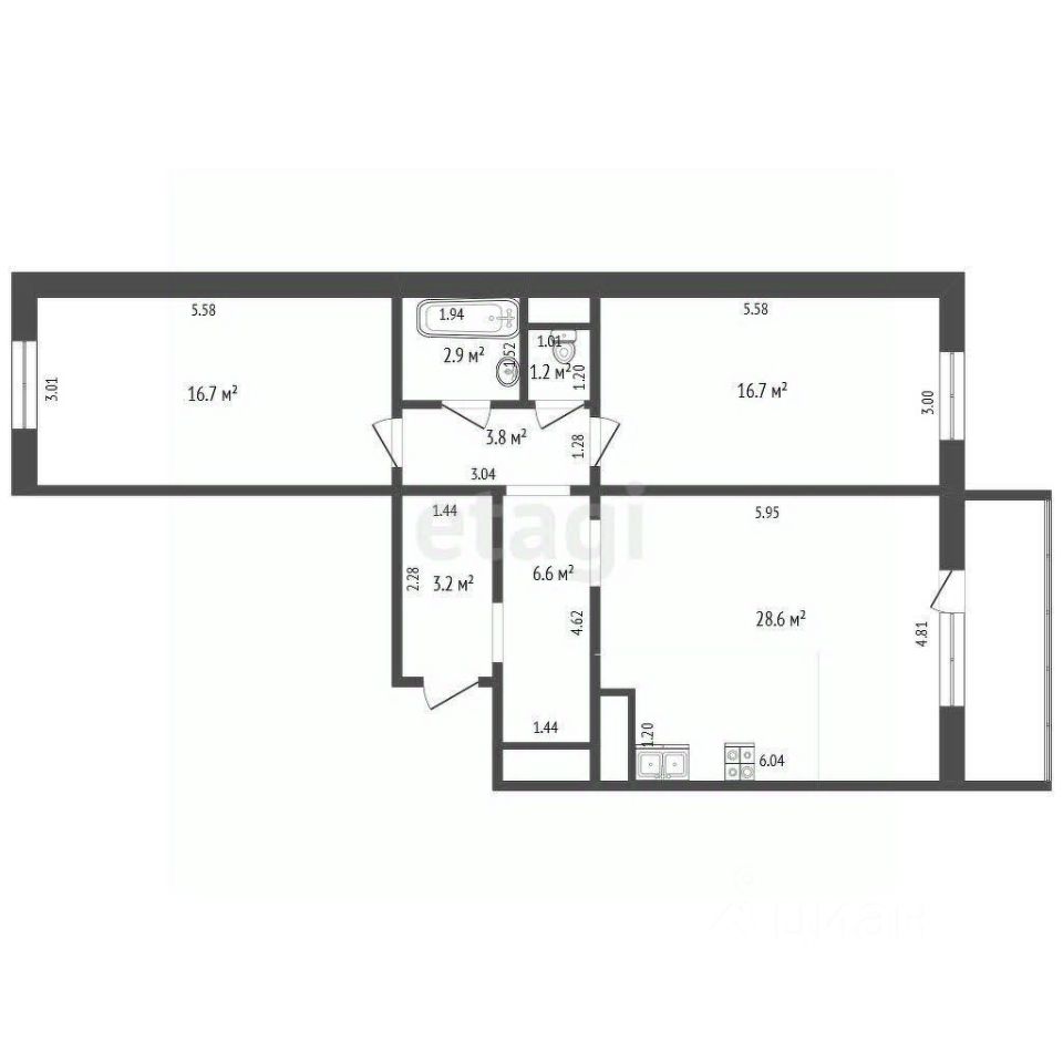 Вашему вниманию предлагается квартира с удачной функциональной планировкой и современным ремонтом. В ней есть лоджия с витражными окнами, большая кухня-гостиная, две раздельные спальни, а также раздельный санузел. При входе расположена прихожая с гардеробом и дополнительным местом для хранения.