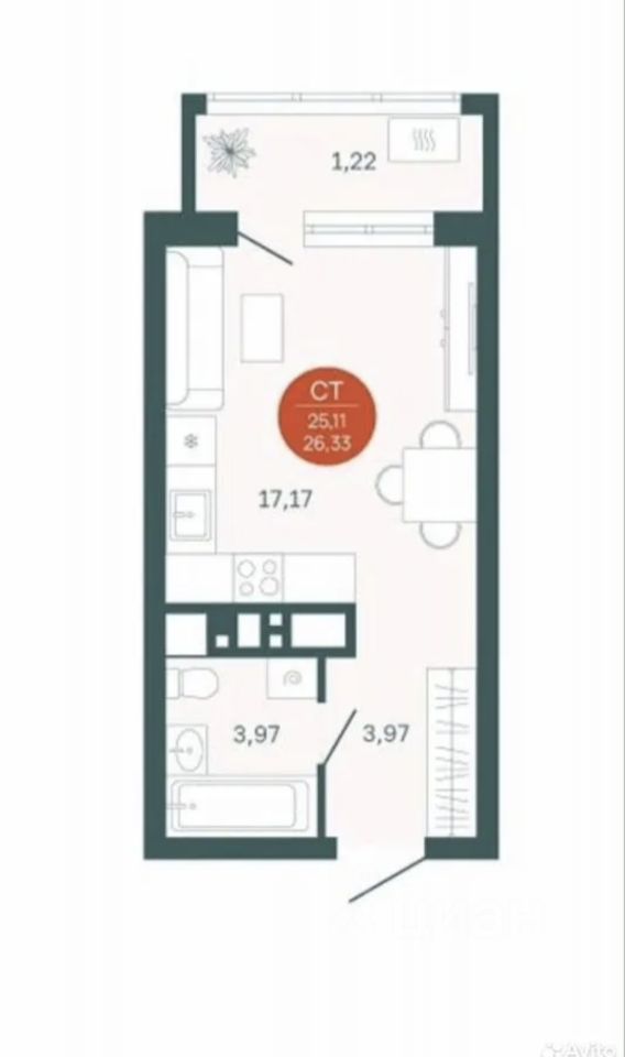 Квартира- студия расположена в прекрасном месте, по факту центр города, возле 2 городской больницы, Одесская 7к1.