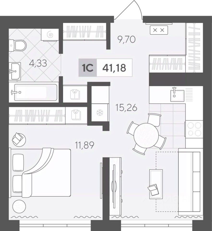 Продаётся 1-комнатная квартира в строящемся доме (ГП 2 (Сергея Корепанова, 34)), срок сдачи: IV-кв. 2027, общей площадью 41.18 кв.м., на 3 этаже. Новый жилой комплекс "Скандиа. Квартал у Леса" от Специализированного застройщика "СКАНДИА У ЛЕСА" расположен в г. Тюмень на ул. Бориса Прудаева.