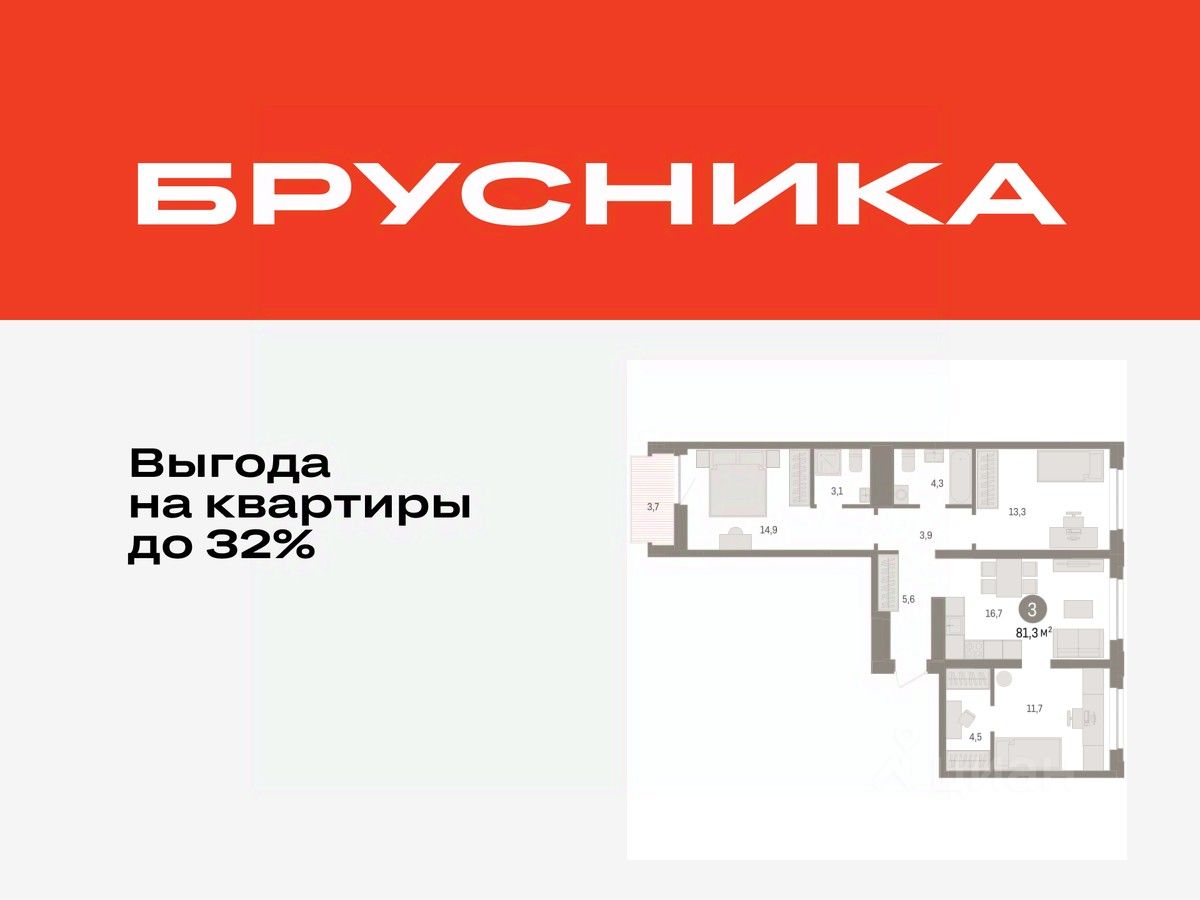 Квартира с кухней-гостиной и тремя спальнями в жилом районе "Речной порт". Особенности планировки: гардеробная, вид во двор, разнесённые спальни, предчистовая отделка, мастер-спальня, балкон.