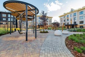 Дом монолитно-каркасный, на фасадах чередуются сдержанные оттенки и природные текстуры .В парадной располагаются колясочные. Для безопасности вещей установлены камеры в парадных, лифтах и по периметру домов. Закрытый двор без автомобилей, детская площадка и зона отдыха.