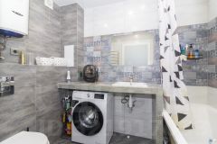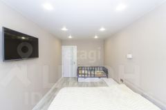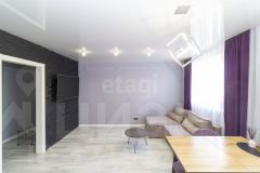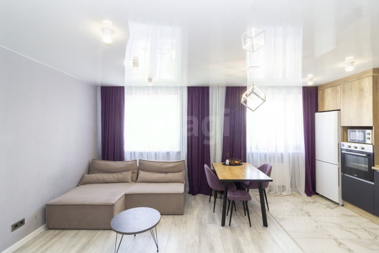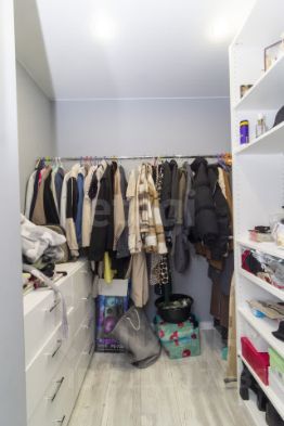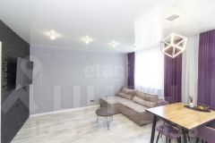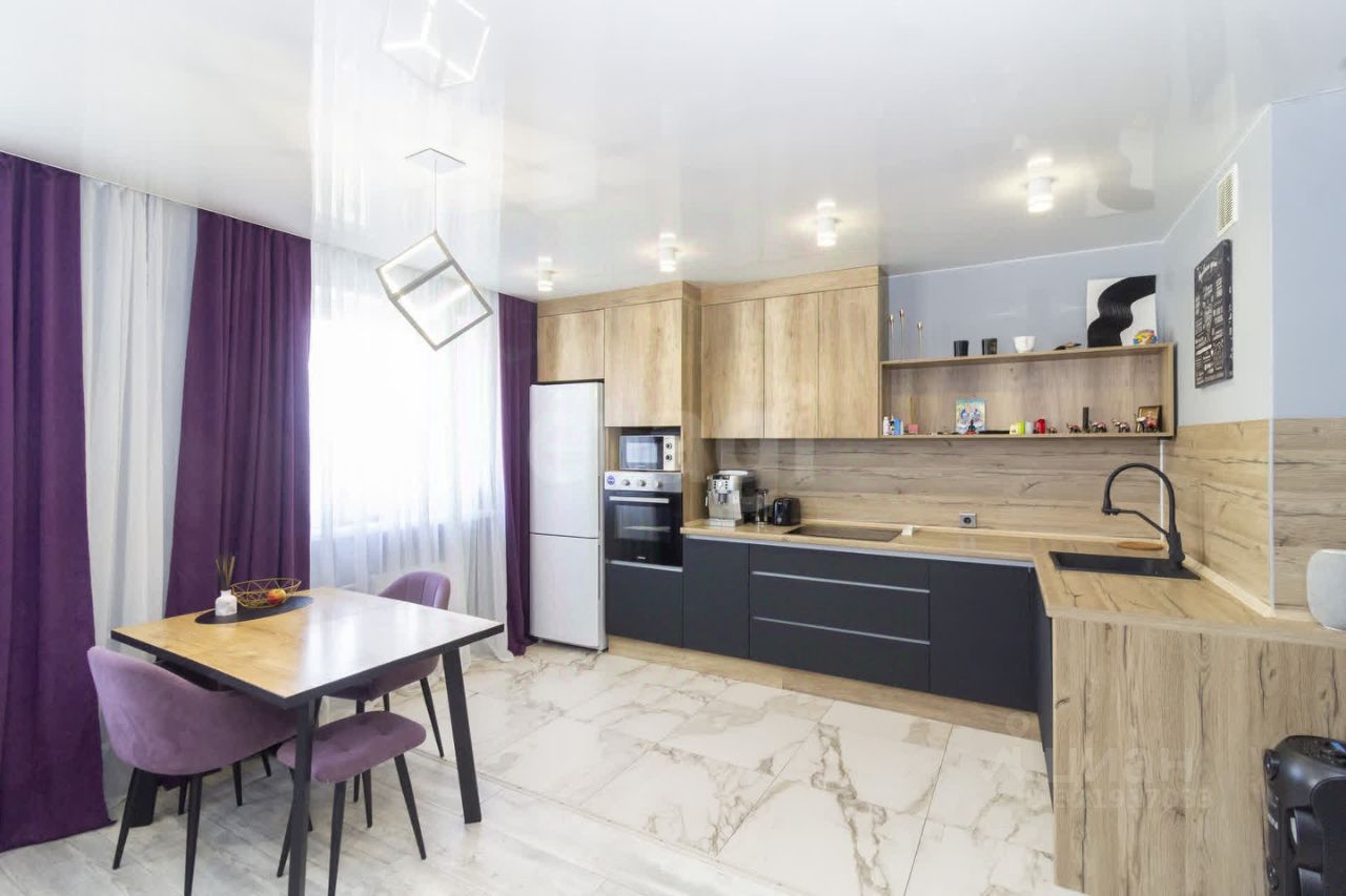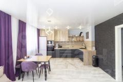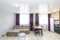 При входе есть ниша для хранения верхней одежды. В квартире 3 изолированные спальни, одна из которых расположена в дальнем конце квартиры. Натяжной потолок с точечными и навесными светильниками. Кухня-гостиная зонирована на кухонную и гостевую зоны. В зоне приготовления пищи на полу плитка из керамогранита. Современный кухонный гарнитур со встроенной бытовой техникой. Всё остаётся при продаже. Можно заезжать и жить!