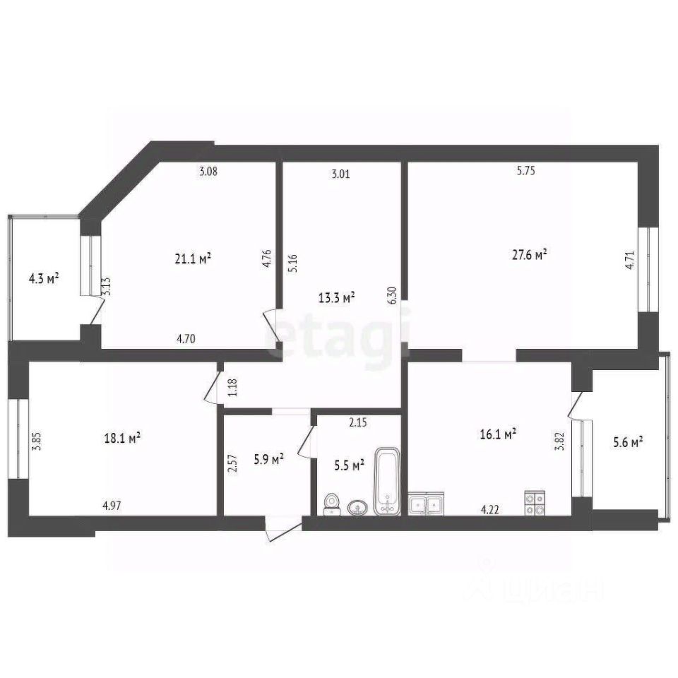 Большая квартира в историческом центре по стоимости 102 тысячи за 1 кв.м. в доме из керамического кирпича!!!!!