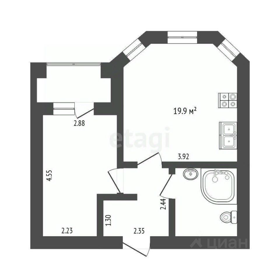 Формат "1+" — полноценная спальня и большая кухня-гостиная