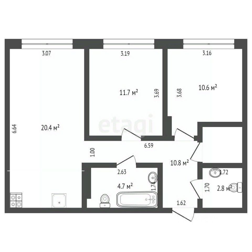 Это идеальное жилье для современной семьи, где каждый найдет свое уютное уголок. Сердцем квартиры является просторная кухня-гостиная . Здесь вы сможете не только приготовить вкусные ужины, но и провести время в компании близких, играя в игры или смотря любимые фильмы. В спальне уютно разместится большая двуспальная кровать, шкаф и туалетный столик. А в комнате для детей предусмотрено достаточно места для игр и учебы. Два санузла экономят время и делают жизнь более комфортной для всей семьи. Необычайно удобная гардеробная поможет организовать пространство в квартире и хранить все необходимые вещи в порядке.