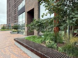 В авторском квартале предусмотрено три уровня благоустройства территории: Первый уровень — это просторные прогулочные аллеи в центре квартала и вдоль улицы Северная. Второй и третий уровень — это "парящие дворы" на стилобате 2 этажа и на эксплуатируемой кровле 19 этажа с озеленением, местами для отдыха и занятий спортом.