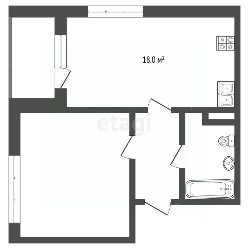 Продается просторная квартира формат 1+ с удобной кухней-гостинной правильной формы и удачным зонированием пространства. Из гостиной выход на просторную остекленную лоджию.