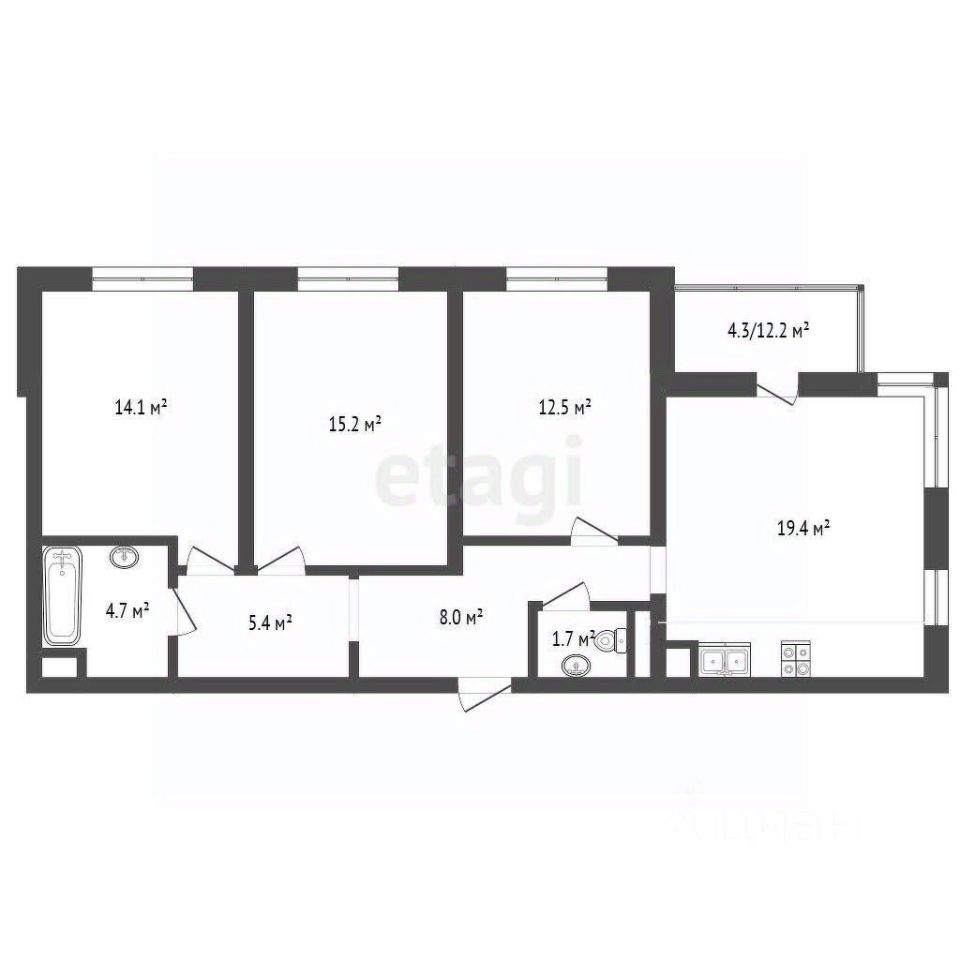 - все три спальные комнаты имеют комфортную для жизни площадь 13-15 метров