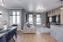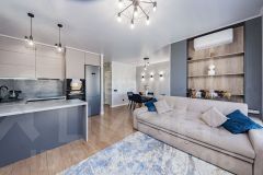 О КВАРТИРЕ: Квартира имеет две отдельных спальни + просторную кухню-гостинную. Выполнен качественный современный ремонт по дизайн-проекту. Имеется 2 санузла, отдельная постирочная , большая гардеробная, кладовка 3 кв.м., закрытый балкон с теплым полом,а также установлен водонагреватель. В туалетах и прихожей есть теплый пол. При продаже остается вся встроенная техника!
