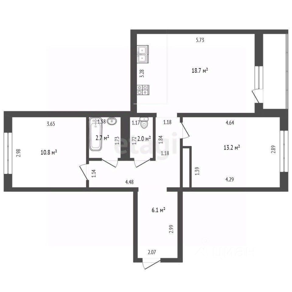 Просторная кухня-гостинная площадью 18 кв.м. с выходом на уютную лоджию в 4 кв.м., которая оснащена панорамным остеклением, позволяющим наслаждаться великолепными видами. Две изолированные комнаты обеспечат вам и вашим близким необходимую приватность и комфорт. В прихожей установлен вместительный встроенный шкаф-купе, что значительно экономит пространство.