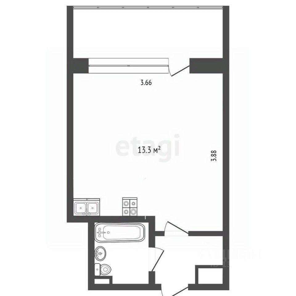 Площадь 17 кв.м., застекленный и утепленный балкон.