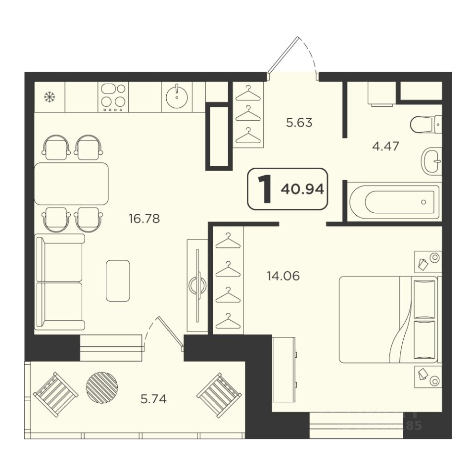 Продаётся 1-комнатная квартира в строящемся доме (ГП-4), срок сдачи: IV-кв. 2027, общей площадью 40.94 кв.м., на 23 этаже. Расположение, транспортная доступность