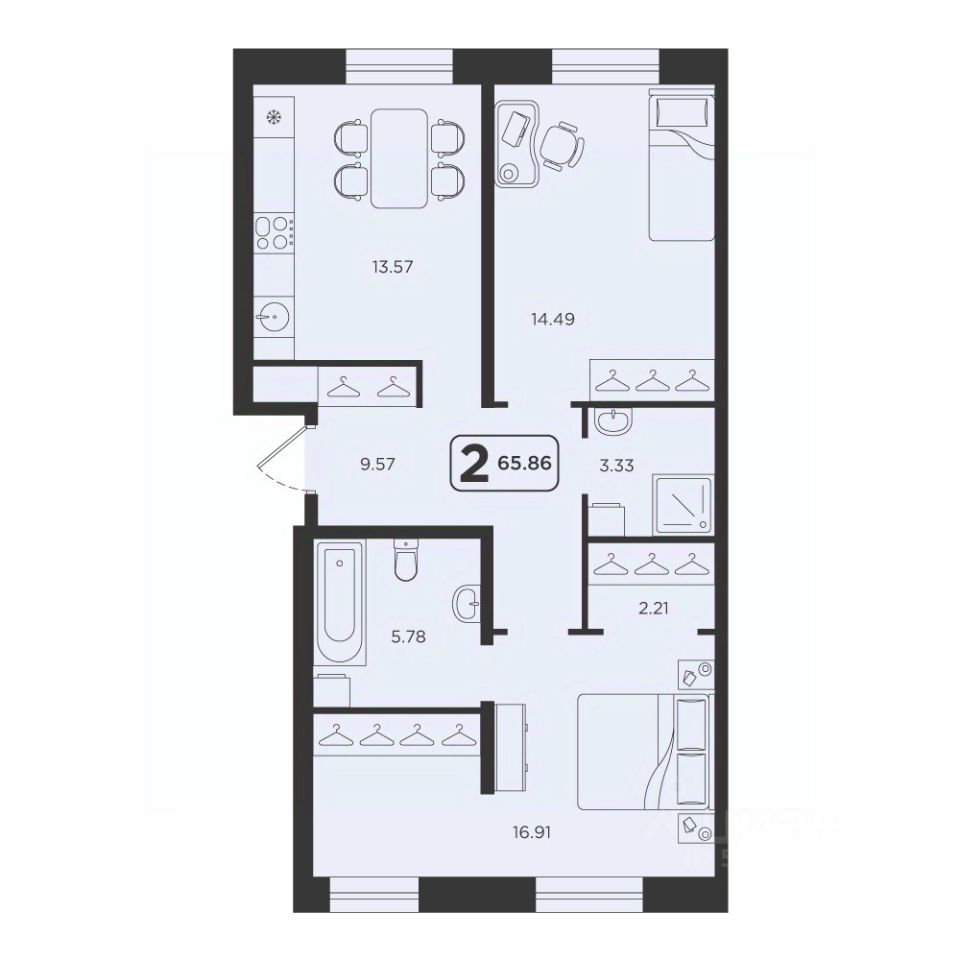 Продаётся 2-комнатная квартира в строящемся доме (ГП-4), срок сдачи: IV-кв. 2027, общей площадью 65.86 кв.м., на 1 этаже. Расположение, транспортная доступность