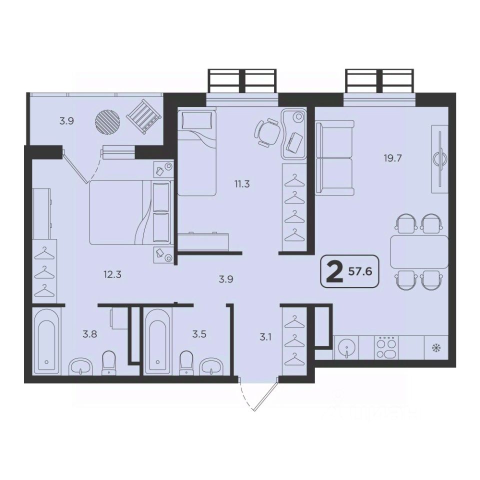 Продаётся 2-комнатная квартира в строящемся доме (ГП-2, секции 1, 2), срок сдачи: I-кв. 2027, общей площадью 57.6 кв.м., на 14 этаже. ЖК "Симфония" - новый проект комфорт-класса в центре Тюмени, будет расположен в пределах улиц Харьковская - Холодильная - Мельникайте."Симфония" - это комплекс из 6 домов переменной этажности в монолитно-каркасном исполнении, отделка фасадов выполнена с применением клинкерного кирпича и по технологии "мокрый фасад", что придает домам стильный и современный вид. Украшением района станет архитектурная концепция и подсветка домов ЖК "Симфония".Охраняемая закрытая территория комплекса с круглосуточным видеонаблюдением, двор без машин, все дома объединены пешеходным бульваром, на 1 этаже предусмотрена торговая галерея, детские площадки с многоуровневыми игровыми комплексами, воркаут зоной с безопасным прорезиненным покрытием.Бесплатный Wi-Fi во дворе, удобный вход в подъезды для маломобильных граждан и мам с колясками, колясочные, лапомойка для домашних питомцев, дизайнерские холлы подъездов, кладовые в подземном паркинге - все это будет реализовано в новом ЖК.Все квартиры с кухнями-гостиными, гардеробными, для любителей проводить время на свежем воздухе - квартиры с террасами.
