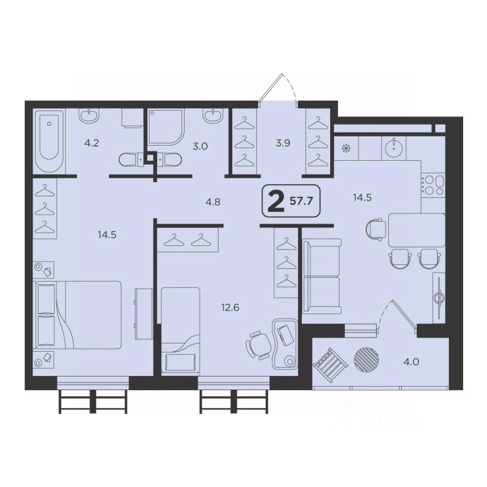 Продаётся 2-комнатная квартира в строящемся доме (ГП-2, секции 1, 2), срок сдачи: I-кв. 2027, общей площадью 57.7 кв.м., на 2 этаже. ЖК "Симфония" - новый проект комфорт-класса в центре Тюмени, будет расположен в пределах улиц Харьковская - Холодильная - Мельникайте."Симфония" - это комплекс из 6 домов переменной этажности в монолитно-каркасном исполнении, отделка фасадов выполнена с применением клинкерного кирпича и по технологии "мокрый фасад", что придает домам стильный и современный вид. Украшением района станет архитектурная концепция и подсветка домов ЖК "Симфония".Охраняемая закрытая территория комплекса с круглосуточным видеонаблюдением, двор без машин, все дома объединены пешеходным бульваром, на 1 этаже предусмотрена торговая галерея, детские площадки с многоуровневыми игровыми комплексами, воркаут зоной с безопасным прорезиненным покрытием.Бесплатный Wi-Fi во дворе, удобный вход в подъезды для маломобильных граждан и мам с колясками, колясочные, лапомойка для домашних питомцев, дизайнерские холлы подъездов, кладовые в подземном паркинге - все это будет реализовано в новом ЖК.Все квартиры с кухнями-гостиными, гардеробными, для любителей проводить время на свежем воздухе - квартиры с террасами.