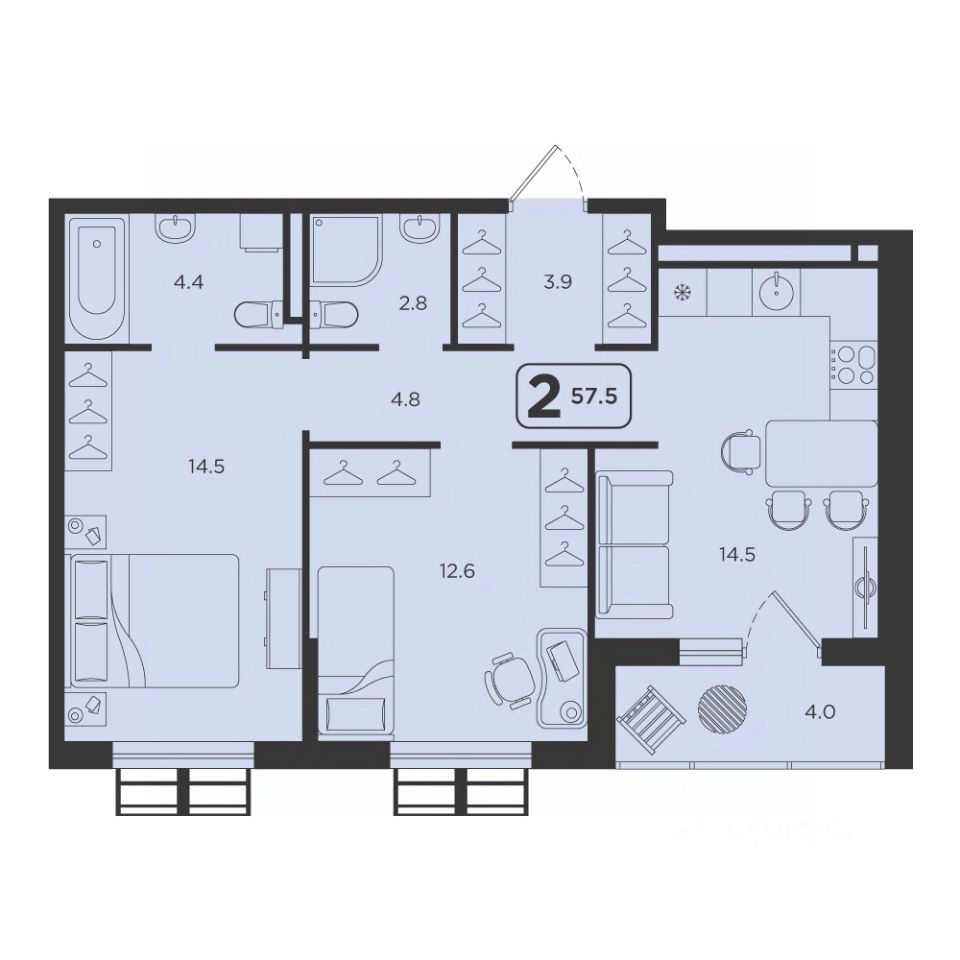Продаётся 2-комнатная квартира в строящемся доме (ГП-2, секция 2), срок сдачи: I-кв. 2027, общей площадью 57.5 кв.м., на 9 этаже. ЖК "Симфония" - новый проект комфорт-класса в центре Тюмени, будет расположен в пределах улиц Харьковская - Холодильная - Мельникайте."Симфония" - это комплекс из 6 домов переменной этажности в монолитно-каркасном исполнении, отделка фасадов выполнена с применением клинкерного кирпича и по технологии "мокрый фасад", что придает домам стильный и современный вид. Украшением района станет архитектурная концепция и подсветка домов ЖК "Симфония".Охраняемая закрытая территория комплекса с круглосуточным видеонаблюдением, двор без машин, все дома объединены пешеходным бульваром, на 1 этаже предусмотрена торговая галерея, детские площадки с многоуровневыми игровыми комплексами, воркаут зоной с безопасным прорезиненным покрытием.Бесплатный Wi-Fi во дворе, удобный вход в подъезды для маломобильных граждан и мам с колясками, колясочные, лапомойка для домашних питомцев, дизайнерские холлы подъездов, кладовые в подземном паркинге - все это будет реализовано в новом ЖК.Все квартиры с кухнями-гостиными, гардеробными, для любителей проводить время на свежем воздухе - квартиры с террасами.