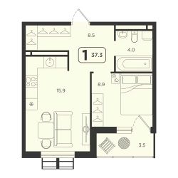 Продаётся 1-комнатная квартира в строящемся доме (ГП-2, секции 1, 2), срок сдачи: I-кв. 2027, общей площадью 37.3 кв.м., на 10 этаже. ЖК "Симфония" - новый проект комфорт-класса в центре Тюмени, будет расположен в пределах улиц Харьковская - Холодильная - Мельникайте."Симфония" - это комплекс из 6 домов переменной этажности в монолитно-каркасном исполнении, отделка фасадов выполнена с применением клинкерного кирпича и по технологии "мокрый фасад", что придает домам стильный и современный вид. Украшением района станет архитектурная концепция и подсветка домов ЖК "Симфония".Охраняемая закрытая территория комплекса с круглосуточным видеонаблюдением, двор без машин, все дома объединены пешеходным бульваром, на 1 этаже предусмотрена торговая галерея, детские площадки с многоуровневыми игровыми комплексами, воркаут зоной с безопасным прорезиненным покрытием.Бесплатный Wi-Fi во дворе, удобный вход в подъезды для маломобильных граждан и мам с колясками, колясочные, лапомойка для домашних питомцев, дизайнерские холлы подъездов, кладовые в подземном паркинге - все это будет реализовано в новом ЖК.Все квартиры с кухнями-гостиными, гардеробными, для любителей проводить время на свежем воздухе - квартиры с террасами.