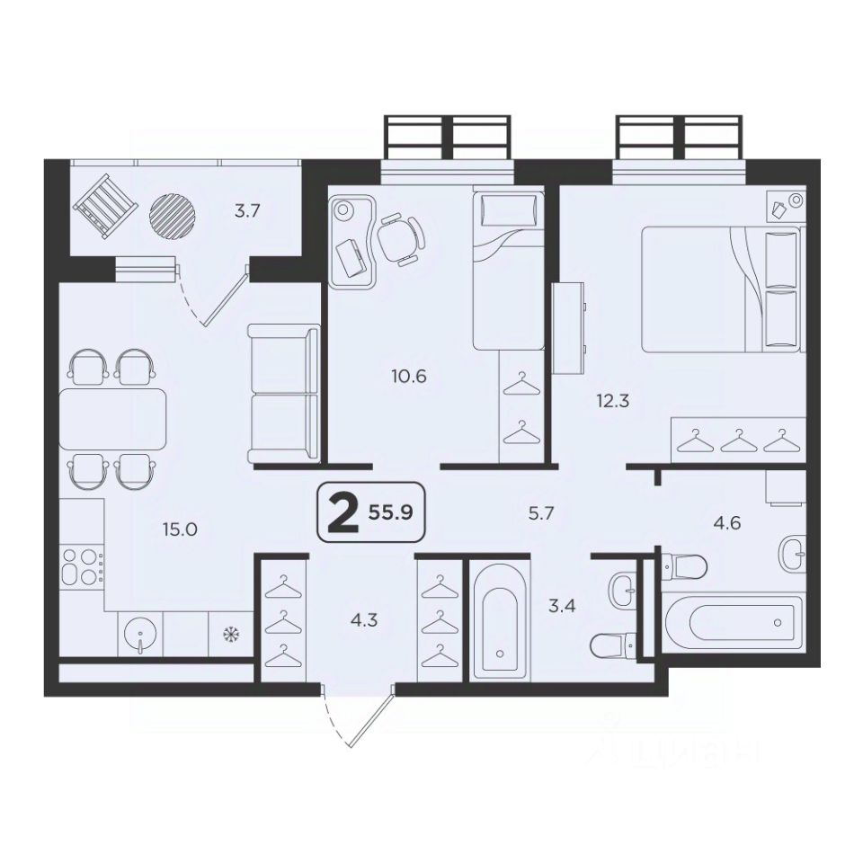 Продаётся 2-комнатная квартира в строящемся доме (ГП-2, секции 1, 2), срок сдачи: I-кв. 2027, общей площадью 55.9 кв.м., на 13 этаже. ЖК "Симфония" - новый проект комфорт-класса в центре Тюмени, будет расположен в пределах улиц Харьковская - Холодильная - Мельникайте."Симфония" - это комплекс из 6 домов переменной этажности в монолитно-каркасном исполнении, отделка фасадов выполнена с применением клинкерного кирпича и по технологии "мокрый фасад", что придает домам стильный и современный вид. Украшением района станет архитектурная концепция и подсветка домов ЖК "Симфония".Охраняемая закрытая территория комплекса с круглосуточным видеонаблюдением, двор без машин, все дома объединены пешеходным бульваром, на 1 этаже предусмотрена торговая галерея, детские площадки с многоуровневыми игровыми комплексами, воркаут зоной с безопасным прорезиненным покрытием.Бесплатный Wi-Fi во дворе, удобный вход в подъезды для маломобильных граждан и мам с колясками, колясочные, лапомойка для домашних питомцев, дизайнерские холлы подъездов, кладовые в подземном паркинге - все это будет реализовано в новом ЖК.Все квартиры с кухнями-гостиными, гардеробными, для любителей проводить время на свежем воздухе - квартиры с террасами.