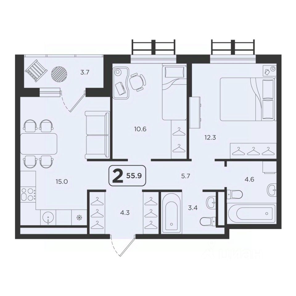 Продаётся 2-комнатная квартира в строящемся доме (ГП-2, секции 1, 2), срок сдачи: I-кв. 2027, общей площадью 55.9 кв.м., на 15 этаже. ЖК "Симфония" - новый проект комфорт-класса в центре Тюмени, будет расположен в пределах улиц Харьковская - Холодильная - Мельникайте."Симфония" - это комплекс из 6 домов переменной этажности в монолитно-каркасном исполнении, отделка фасадов выполнена с применением клинкерного кирпича и по технологии "мокрый фасад", что придает домам стильный и современный вид. Украшением района станет архитектурная концепция и подсветка домов ЖК "Симфония".Охраняемая закрытая территория комплекса с круглосуточным видеонаблюдением, двор без машин, все дома объединены пешеходным бульваром, на 1 этаже предусмотрена торговая галерея, детские площадки с многоуровневыми игровыми комплексами, воркаут зоной с безопасным прорезиненным покрытием.Бесплатный Wi-Fi во дворе, удобный вход в подъезды для маломобильных граждан и мам с колясками, колясочные, лапомойка для домашних питомцев, дизайнерские холлы подъездов, кладовые в подземном паркинге - все это будет реализовано в новом ЖК.Все квартиры с кухнями-гостиными, гардеробными, для любителей проводить время на свежем воздухе - квартиры с террасами.