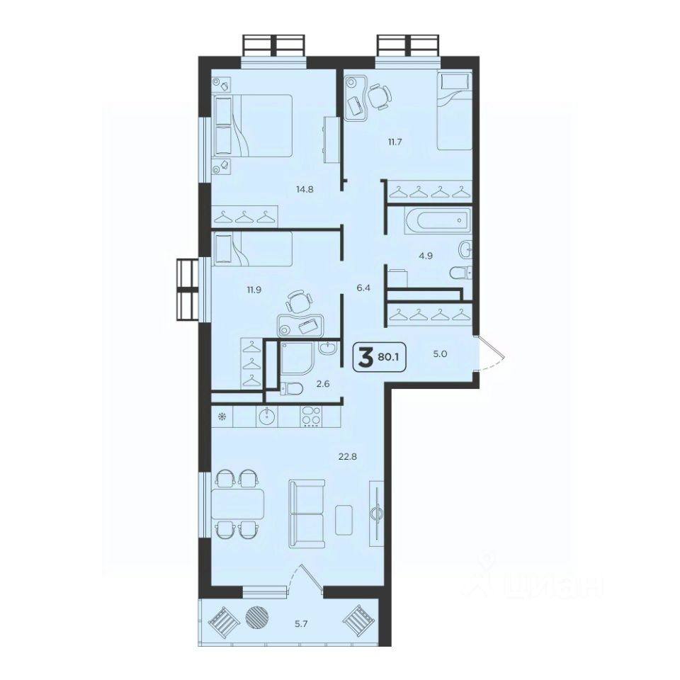 Продаётся 3-комнатная квартира в строящемся доме (ГП-2, секции 1, 2), срок сдачи: I-кв. 2027, общей площадью 80.1 кв.м., на 18 этаже. ЖК "Симфония" - новый проект комфорт-класса в центре Тюмени, будет расположен в пределах улиц Харьковская - Холодильная - Мельникайте."Симфония" - это комплекс из 6 домов переменной этажности в монолитно-каркасном исполнении, отделка фасадов выполнена с применением клинкерного кирпича и по технологии "мокрый фасад", что придает домам стильный и современный вид. Украшением района станет архитектурная концепция и подсветка домов ЖК "Симфония".Охраняемая закрытая территория комплекса с круглосуточным видеонаблюдением, двор без машин, все дома объединены пешеходным бульваром, на 1 этаже предусмотрена торговая галерея, детские площадки с многоуровневыми игровыми комплексами, воркаут зоной с безопасным прорезиненным покрытием.Бесплатный Wi-Fi во дворе, удобный вход в подъезды для маломобильных граждан и мам с колясками, колясочные, лапомойка для домашних питомцев, дизайнерские холлы подъездов, кладовые в подземном паркинге - все это будет реализовано в новом ЖК.Все квартиры с кухнями-гостиными, гардеробными, для любителей проводить время на свежем воздухе - квартиры с террасами.