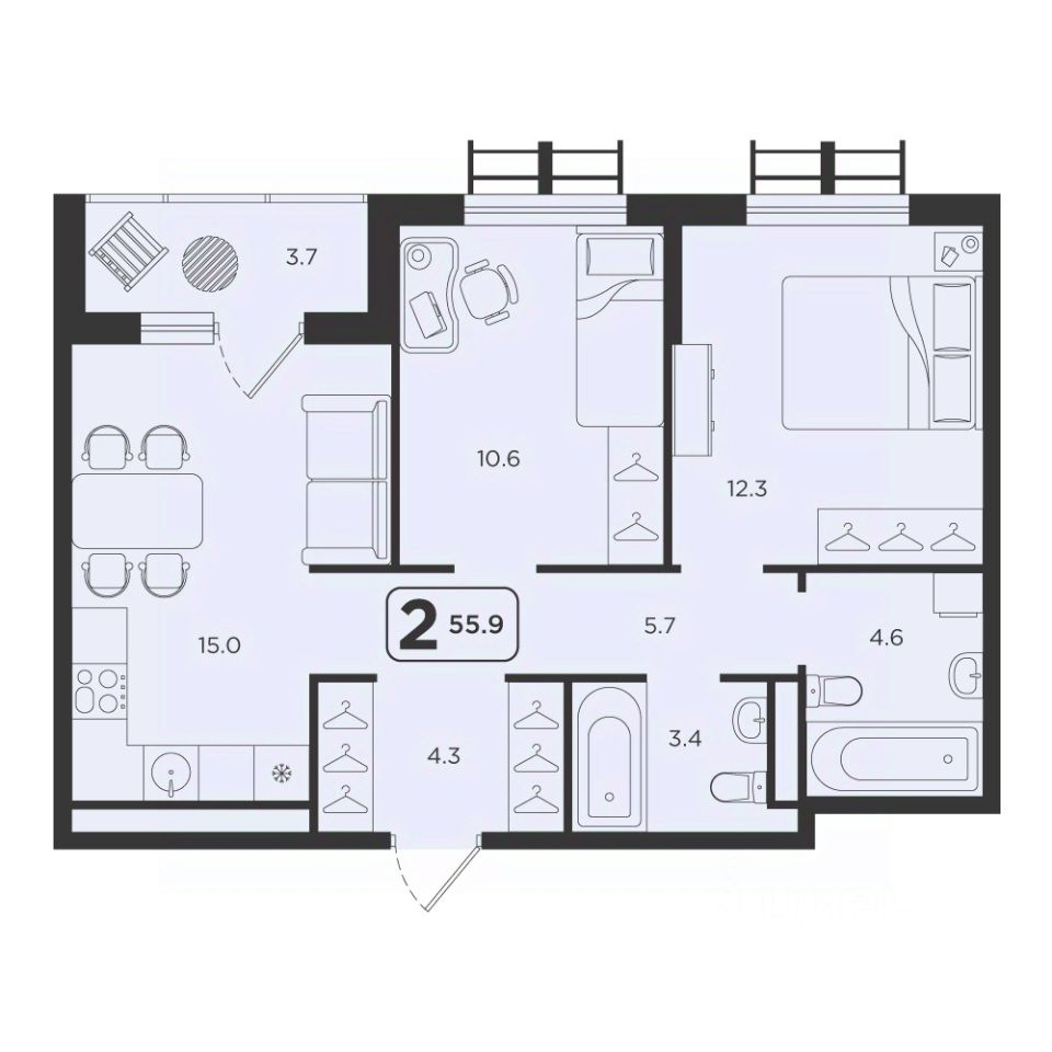 Продаётся 2-комнатная квартира в строящемся доме (ГП-2, секции 1, 2), срок сдачи: I-кв. 2027, общей площадью 55.9 кв.м., на 18 этаже. ЖК "Симфония" - новый проект комфорт-класса в центре Тюмени, будет расположен в пределах улиц Харьковская - Холодильная - Мельникайте."Симфония" - это комплекс из 6 домов переменной этажности в монолитно-каркасном исполнении, отделка фасадов выполнена с применением клинкерного кирпича и по технологии "мокрый фасад", что придает домам стильный и современный вид. Украшением района станет архитектурная концепция и подсветка домов ЖК "Симфония".Охраняемая закрытая территория комплекса с круглосуточным видеонаблюдением, двор без машин, все дома объединены пешеходным бульваром, на 1 этаже предусмотрена торговая галерея, детские площадки с многоуровневыми игровыми комплексами, воркаут зоной с безопасным прорезиненным покрытием.Бесплатный Wi-Fi во дворе, удобный вход в подъезды для маломобильных граждан и мам с колясками, колясочные, лапомойка для домашних питомцев, дизайнерские холлы подъездов, кладовые в подземном паркинге - все это будет реализовано в новом ЖК.Все квартиры с кухнями-гостиными, гардеробными, для любителей проводить время на свежем воздухе - квартиры с террасами.