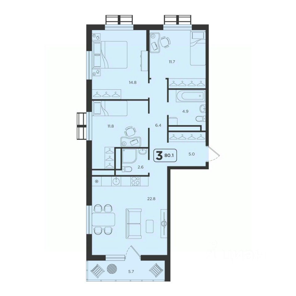 Продаётся 3-комнатная квартира в строящемся доме (ГП-2, секции 1, 2), срок сдачи: I-кв. 2027, общей площадью 80.1 кв.м., на 20 этаже. ЖК "Симфония" - новый проект комфорт-класса в центре Тюмени, будет расположен в пределах улиц Харьковская - Холодильная - Мельникайте."Симфония" - это комплекс из 6 домов переменной этажности в монолитно-каркасном исполнении, отделка фасадов выполнена с применением клинкерного кирпича и по технологии "мокрый фасад", что придает домам стильный и современный вид. Украшением района станет архитектурная концепция и подсветка домов ЖК "Симфония".Охраняемая закрытая территория комплекса с круглосуточным видеонаблюдением, двор без машин, все дома объединены пешеходным бульваром, на 1 этаже предусмотрена торговая галерея, детские площадки с многоуровневыми игровыми комплексами, воркаут зоной с безопасным прорезиненным покрытием.Бесплатный Wi-Fi во дворе, удобный вход в подъезды для маломобильных граждан и мам с колясками, колясочные, лапомойка для домашних питомцев, дизайнерские холлы подъездов, кладовые в подземном паркинге - все это будет реализовано в новом ЖК.Все квартиры с кухнями-гостиными, гардеробными, для любителей проводить время на свежем воздухе - квартиры с террасами.