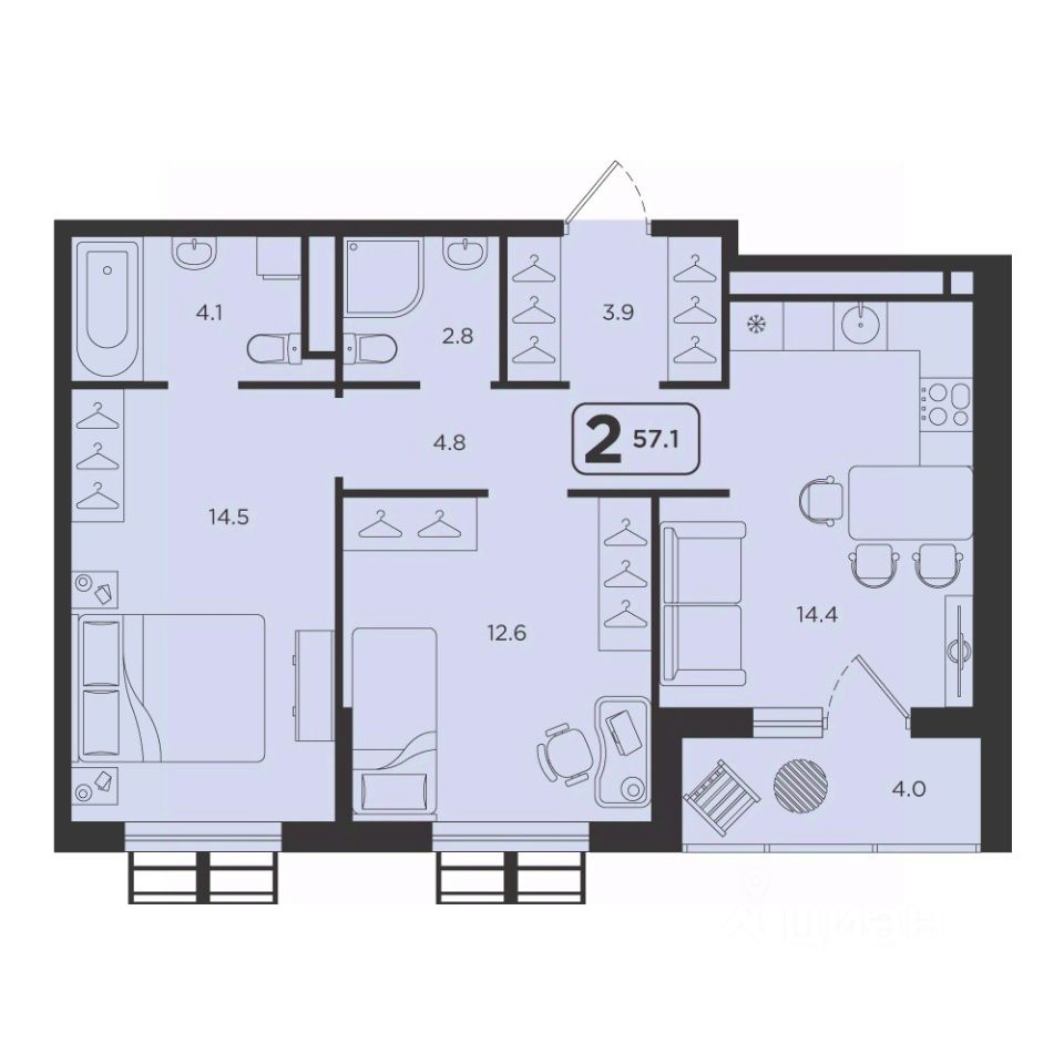 Продаётся 2-комнатная квартира в строящемся доме (ГП-2, секции 1, 2), срок сдачи: I-кв. 2027, общей площадью 57.1 кв.м., на 21 этаже. ЖК "Симфония" - новый проект комфорт-класса в центре Тюмени, будет расположен в пределах улиц Харьковская - Холодильная - Мельникайте."Симфония" - это комплекс из 6 домов переменной этажности в монолитно-каркасном исполнении, отделка фасадов выполнена с применением клинкерного кирпича и по технологии "мокрый фасад", что придает домам стильный и современный вид. Украшением района станет архитектурная концепция и подсветка домов ЖК "Симфония".Охраняемая закрытая территория комплекса с круглосуточным видеонаблюдением, двор без машин, все дома объединены пешеходным бульваром, на 1 этаже предусмотрена торговая галерея, детские площадки с многоуровневыми игровыми комплексами, воркаут зоной с безопасным прорезиненным покрытием.Бесплатный Wi-Fi во дворе, удобный вход в подъезды для маломобильных граждан и мам с колясками, колясочные, лапомойка для домашних питомцев, дизайнерские холлы подъездов, кладовые в подземном паркинге - все это будет реализовано в новом ЖК.Все квартиры с кухнями-гостиными, гардеробными, для любителей проводить время на свежем воздухе - квартиры с террасами.