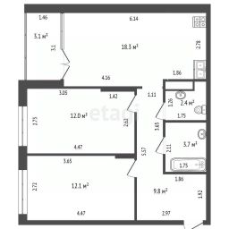 58,3 м² на 3 этаже в современном доме комфорт-класса