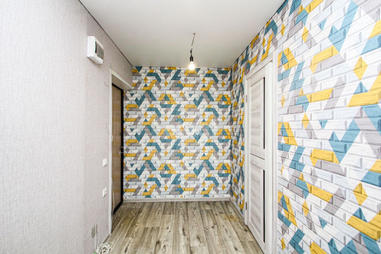 В квартире с/у выполнен полностью в кафеле, в коридоре и комнате на полу линолеум, натяжной потолок везде. В коридоре возможно разместить просторный шкаф-купе, также достаточно большая комната, где можно разместить кухонный гарнитур и спальню. Чистая площадь квартиры составляет 26 кв., без учета балкона.