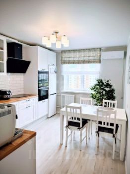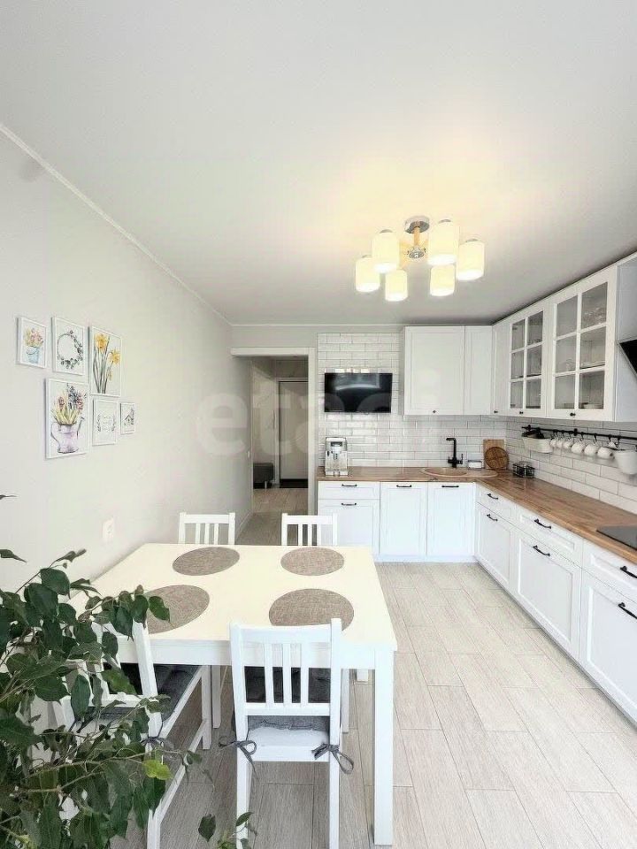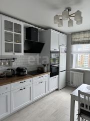 - Кухня площадью 14 кв. м служит полноценным центром квартиры, подходящим как для повседневных семейных обедов, так и для приема гостей.