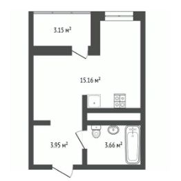 Продуманная эргономичная планировка позволяет использовать пространство максимально эффективно: просторная жилая зона гармонично сочетается с удобной кухонной зоной. Компактность не мешает функциональности однокомнатной квартиры.
