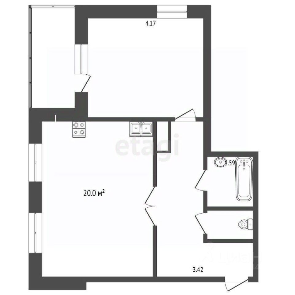 Эта квартира грамотно организована в просторное и функциональное жилое пространство. Одно из ключевых преимуществ — возможность адаптации под ваши нужды: большую объединенную кухню-гостиную можно зонировать перегородкой, создавая изолированную комнату.