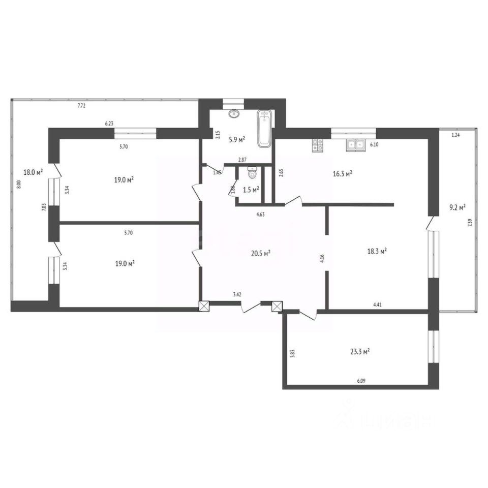 Планировка: 4 просторные комнаты, кухня, раздельный санузел, большой коридор и тамбур.