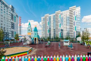 Микрорайон радует своих жителей отсутствием старого жилого фонда, частного сектора - вокруг будет только новое красивое современное жилье, сразу строят несколько застройщиков, что гарантирует богатую и разнообразную инфраструктуру и впоследствии рост цен на жилье в этом перспективном районе. На территории квартала создана без барьерная среда, в подъездах предусмотрены места для организации колясочных, Во дворе благоустроенная детская площадка. Рядом остановка общественного транспорта, супермаркеты, магазины, аптеки.