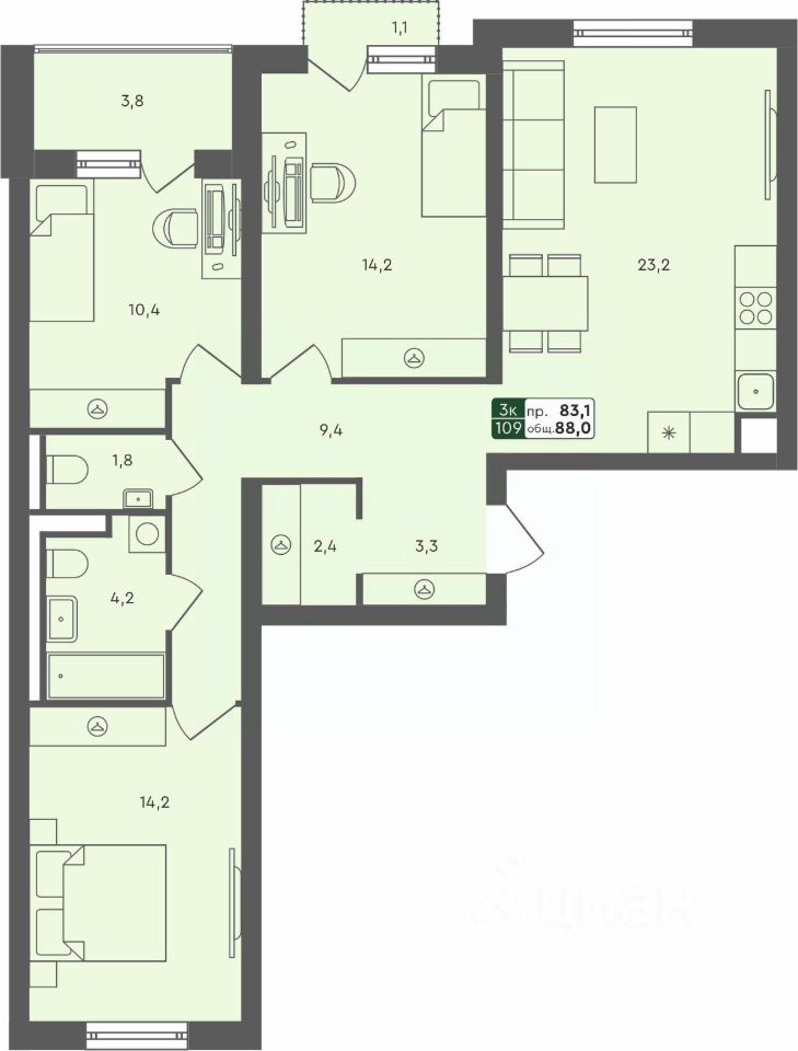 Продаётся 3-комнатная квартира в строящемся доме (ГП-3 (Бульварная, 2)), срок сдачи: IV-кв. 2025, общей площадью 88 кв.м., на 2 этаже. Проект в формате "Дома не выше сосен" отражает синтез великолепной архитектуры, престижной инфраструктуры и разумной стоимости. Жилье повышенного качества по доступной цене городского типа (квартиры), таунхаусы и индивидуальные дома с земельными участками характеризуются высокой транспортной доступностью исторического Тобольского тракта и формируют гармоничную и экологичную среду для комфортного проживания.